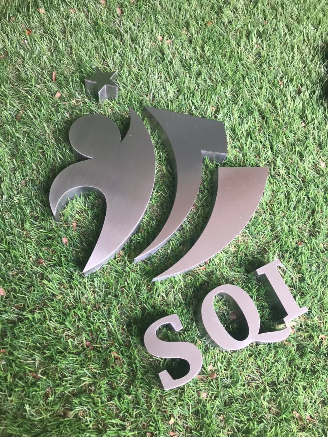 - ป้ายสแตนเลสแฮร์ไลน์เนื้อทอง กัดกรดเม็ดทราย