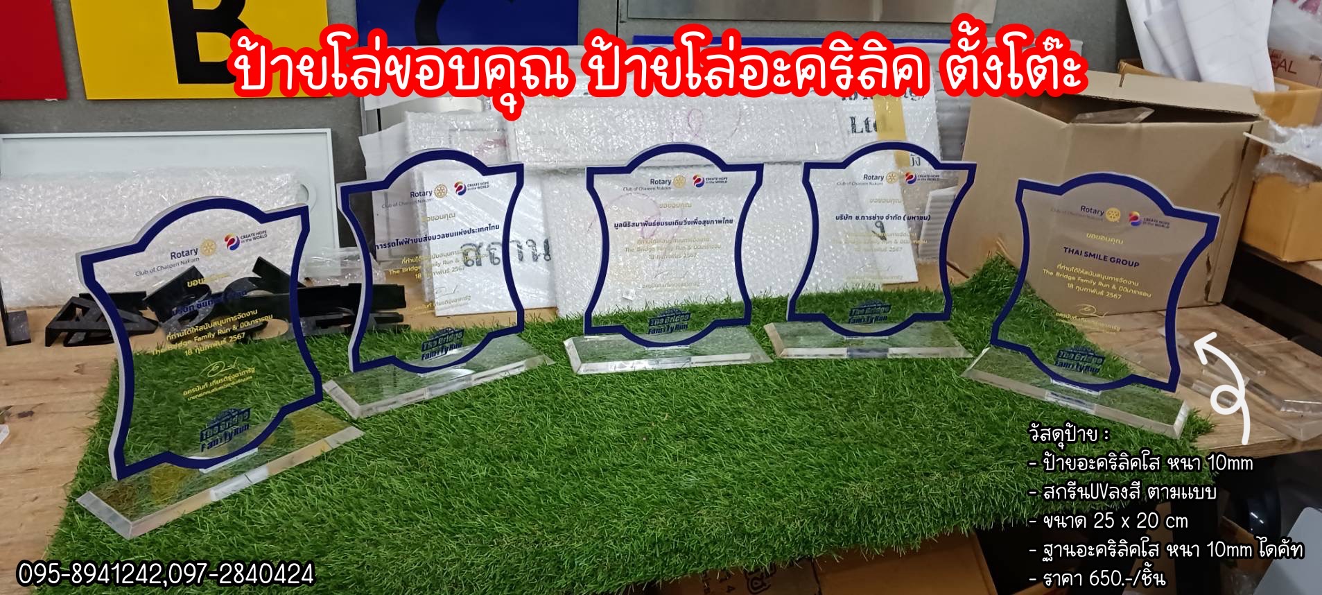 - ป้ายโล่ขอบคุณ ป้ายโล่อะคริลิคตั้งโต๊ะ ป้ายงานพิมพ์UV