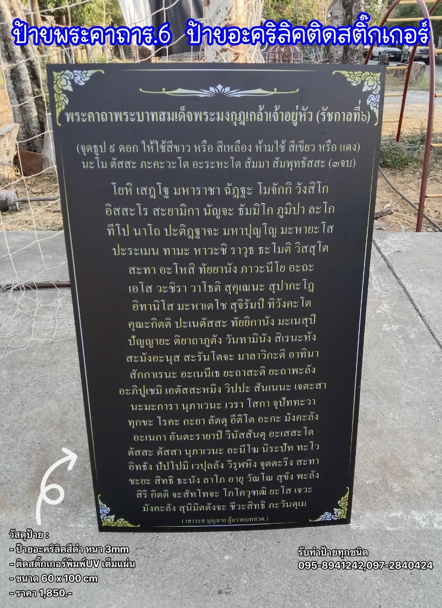 - ป้ายคาถาบูชา ป้ายอะคริลิคติดสติ๊กเกอร์